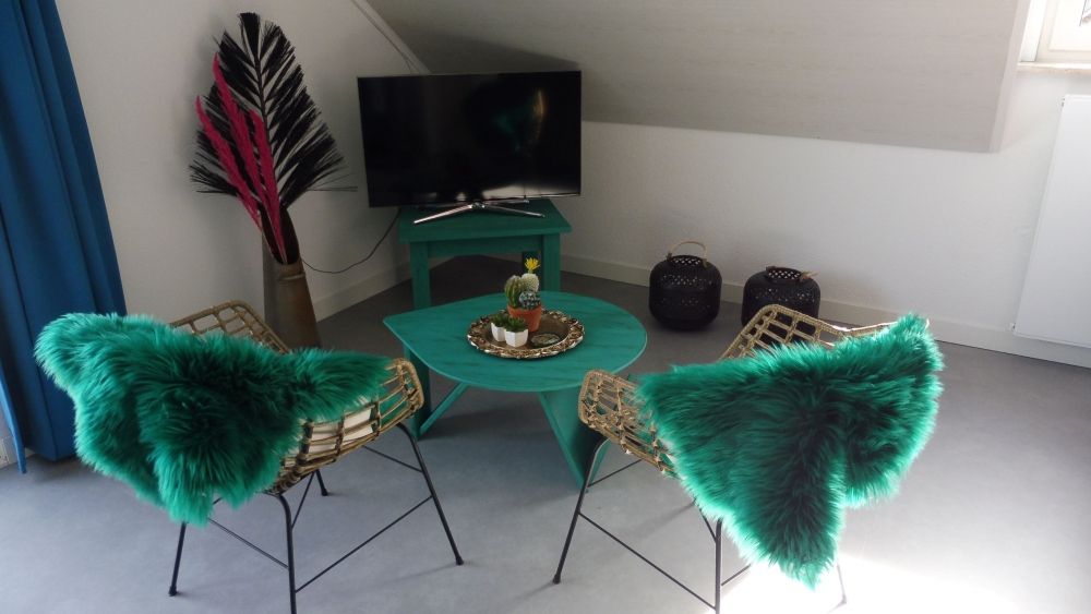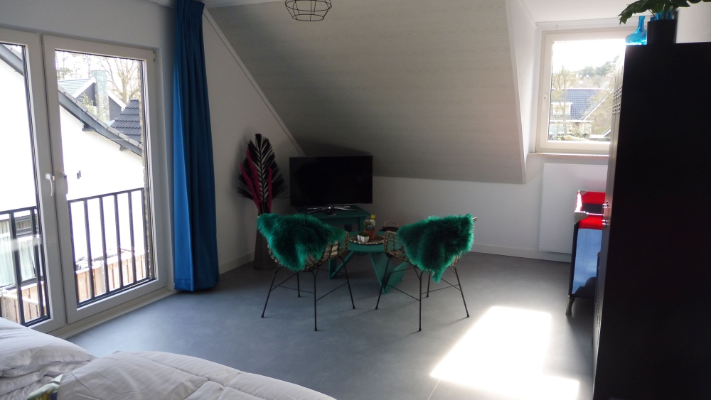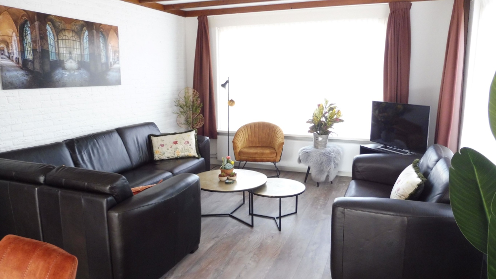Bovenverdieping: 1 Woonslaapkamer met 2 boxspring bedden (extra lang 2.10), 3 slaapkamers met