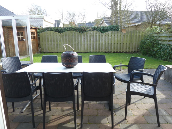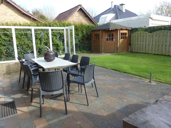 Buiten: heerlijk terras op het zuiden met voldoende speelruimte en tuinhuisje.